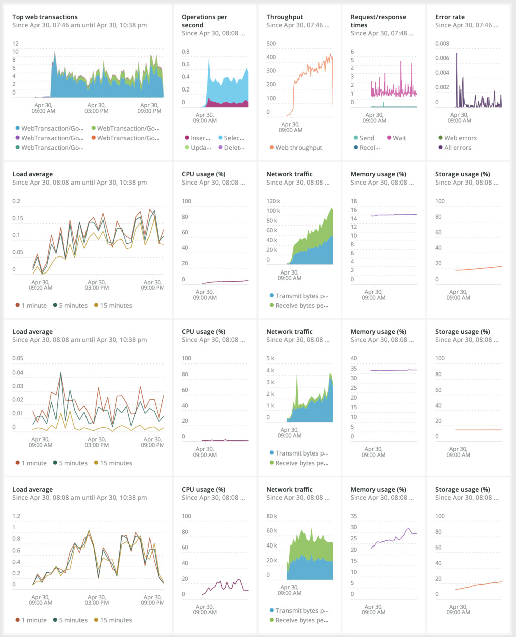 今回はスコアサーバーと監視サーバーの監視をNewRelicで行いました。月100GBのデータ収集まで無料なのでありがたく使わせていただきました。監視の基本的な機能は備わっていたので快適に内部監視・外部監視を行うことができました。